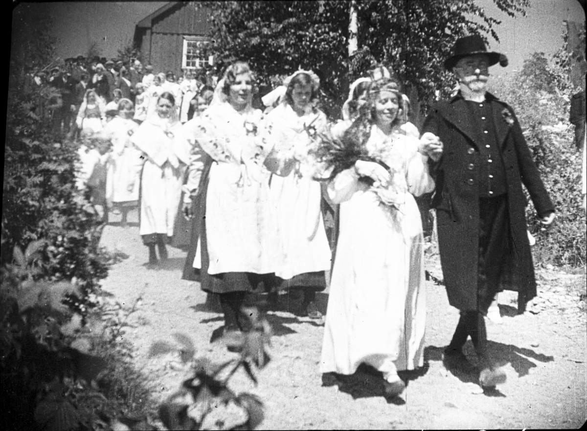 Brudfölje: Gammelfar med bruden på väg till sadelplatsen Ärtemark