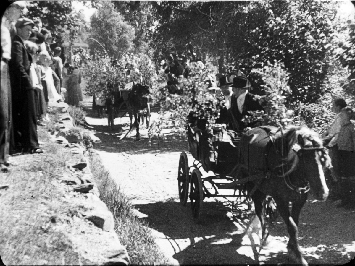 Brudfölje: Åkande bröllopsgäster Ärtemark