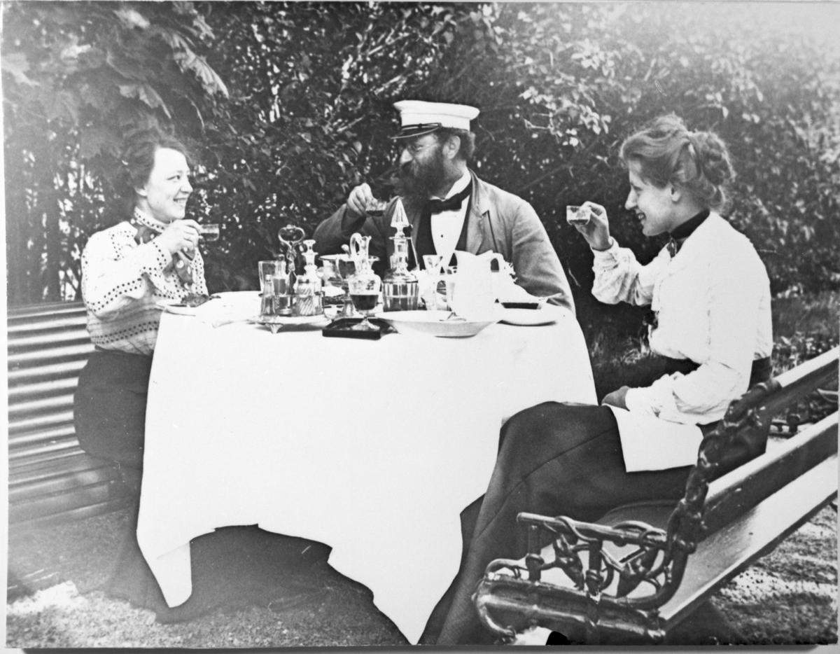 Middag (gula ärtor med varm punsch) i trädgården hos Disponent V A Deshayer (mitten).