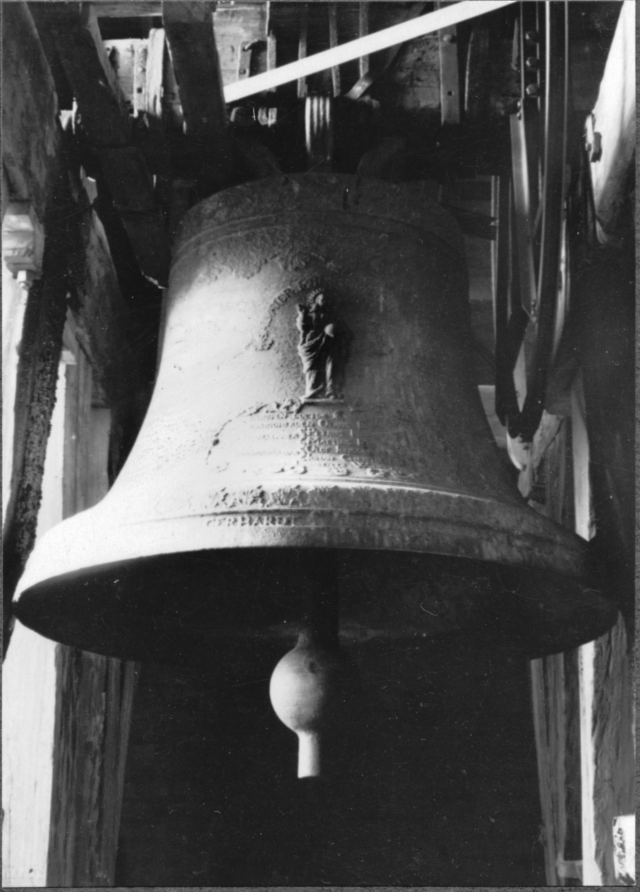Storklockan av malm. Gjuten år 1598, omgjöts av Isak Rockman i Falun år 1744.