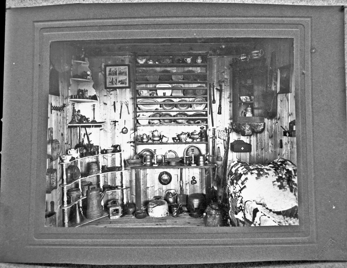 Vägg med kärlhylla. Dalslands Fornsal. Ödeborg