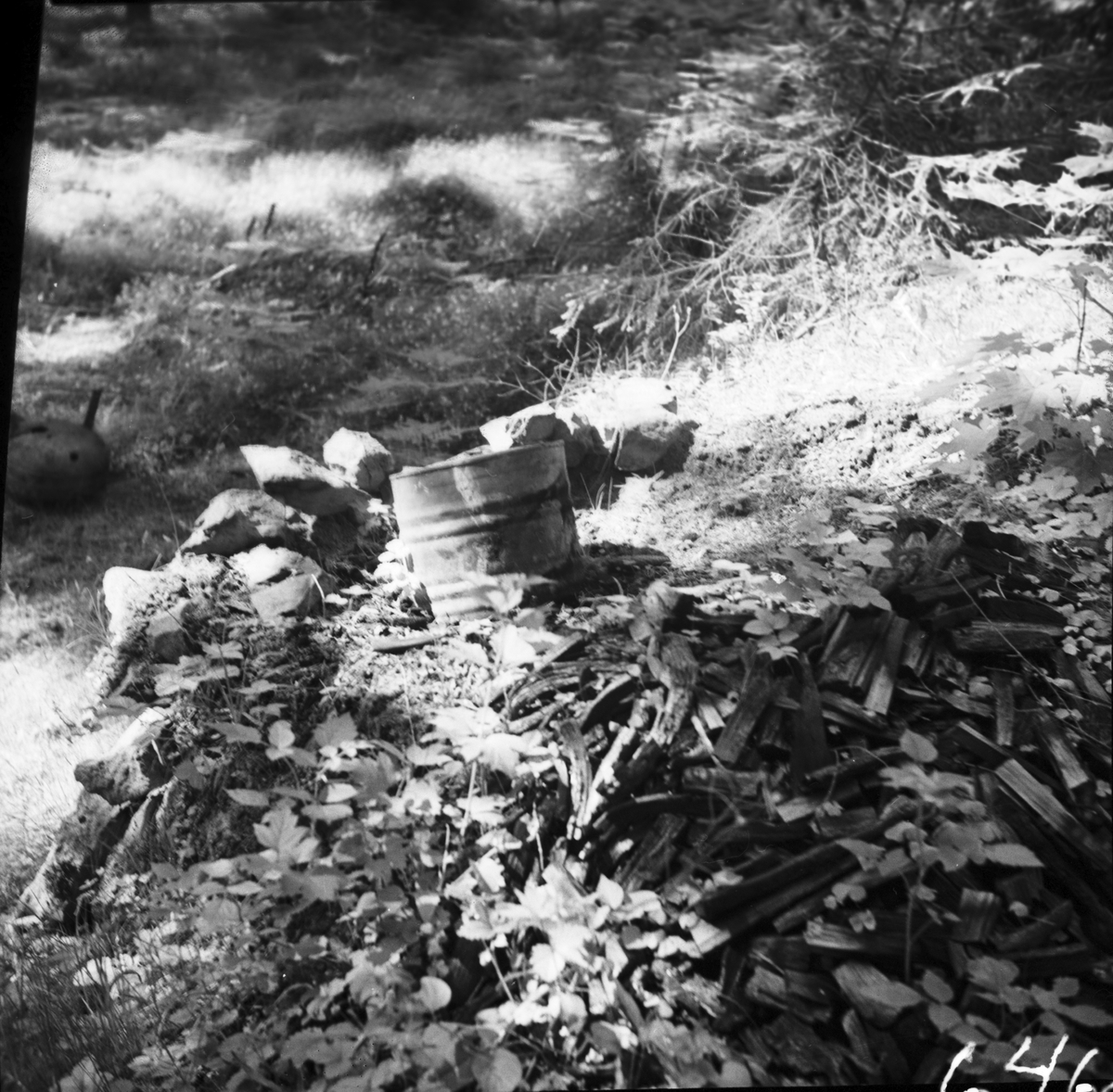 Ugnen sedd uppifrån. En plåtburk med prima tyre ger ända upp till 3 liter tjära Laxarby.