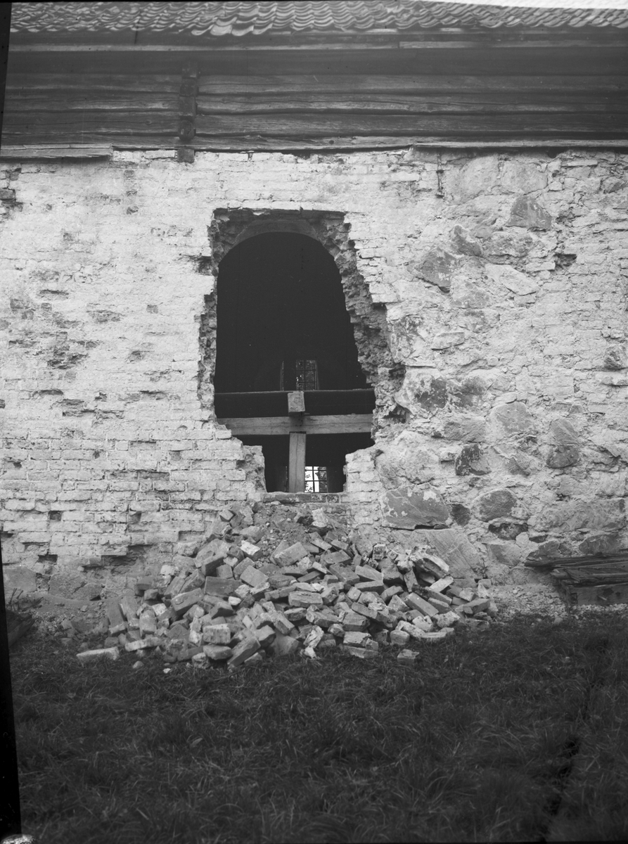 Den ursprungliga fönsteröppningen som tagits upp Tösse ödekyrka