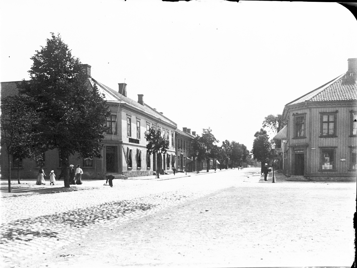 Hörnet av Eds- och Kungsgatorna med Dallöfska fastigheten i förgrunden till vänster. Vänersborg