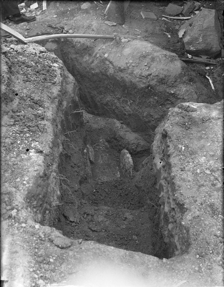 Kista av kalkstenshällar norr om vapenhuset