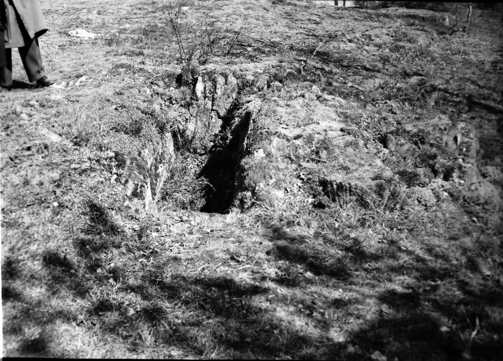 Hällkista i en naturlig urholkning i berget 2 meter lång, 65 cm bred. Järskagården, S Härene.