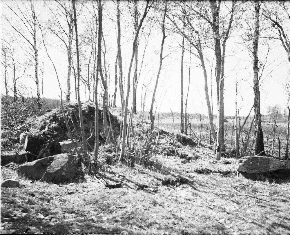 Rester av hällkista i skadad gravhög. Högstorp Skepplanda