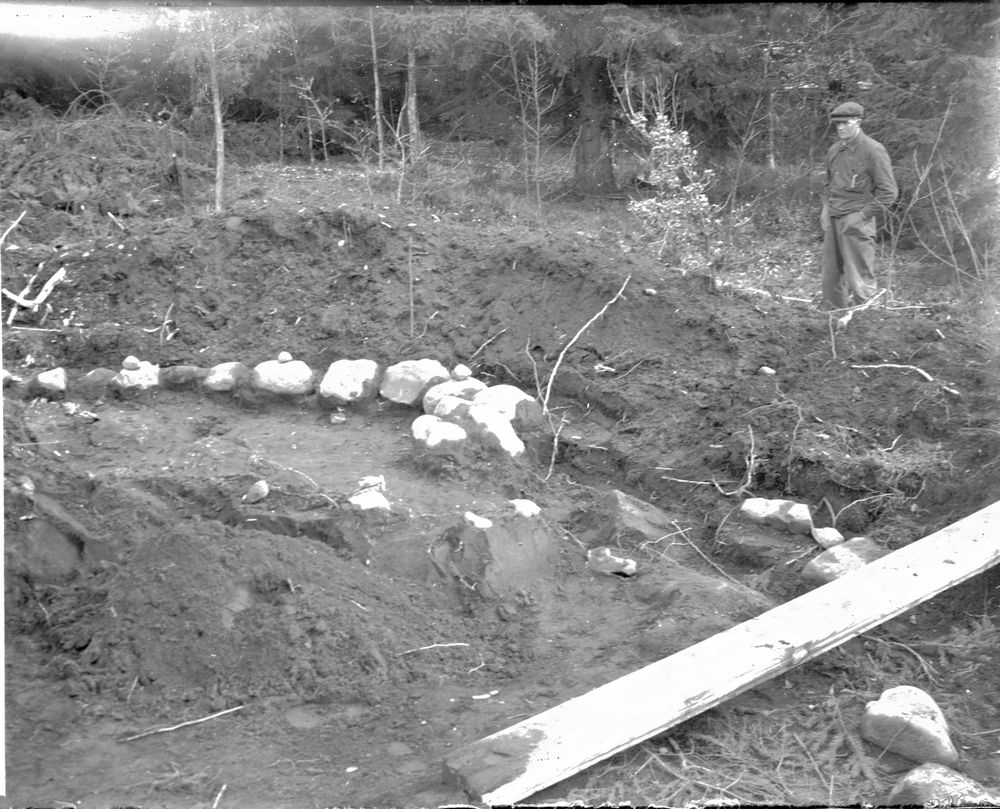 Södra kanten av stenkretsen i grav 5. Hästevadet Västra Tunhem