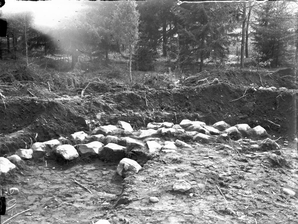Södra kanten av stensättningen i grav 4. Hästevadet Västra Tunhem