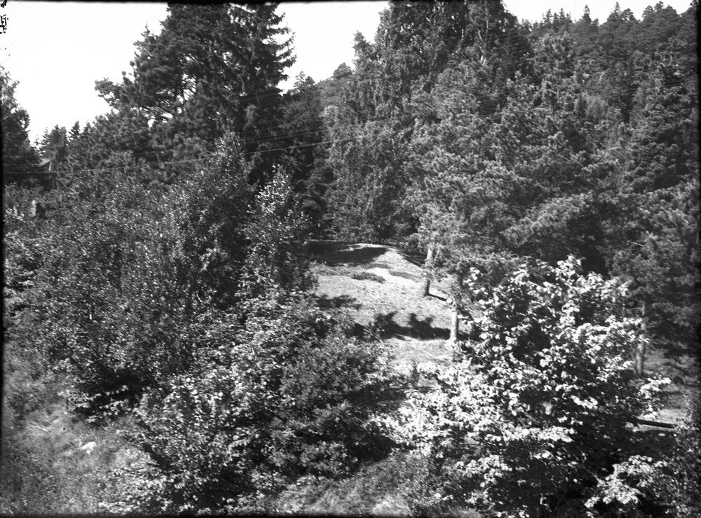 Gravhögen öster om domarringen från landsvägen. Hästevadet Västra Tunhem