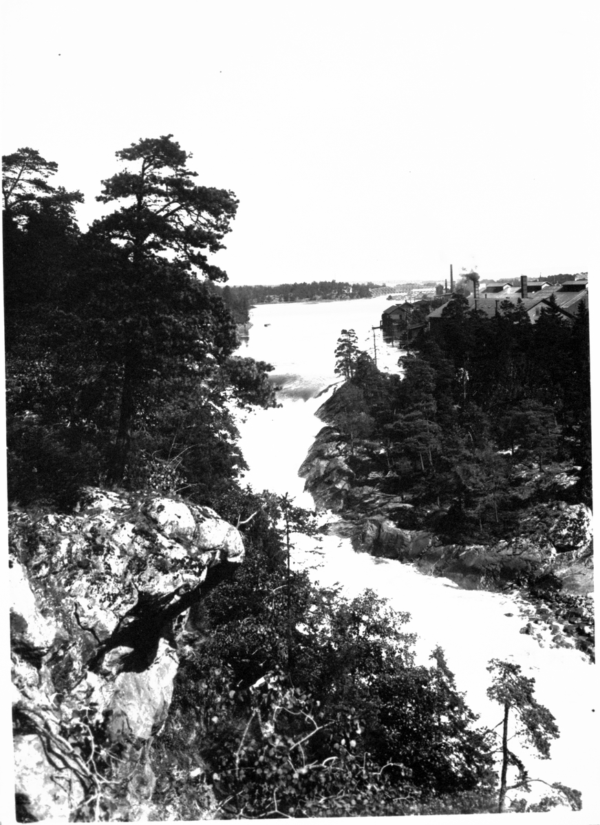 Nolströmmen och Gullön samt Gullöfors fabriker där bortom. Trollhättan