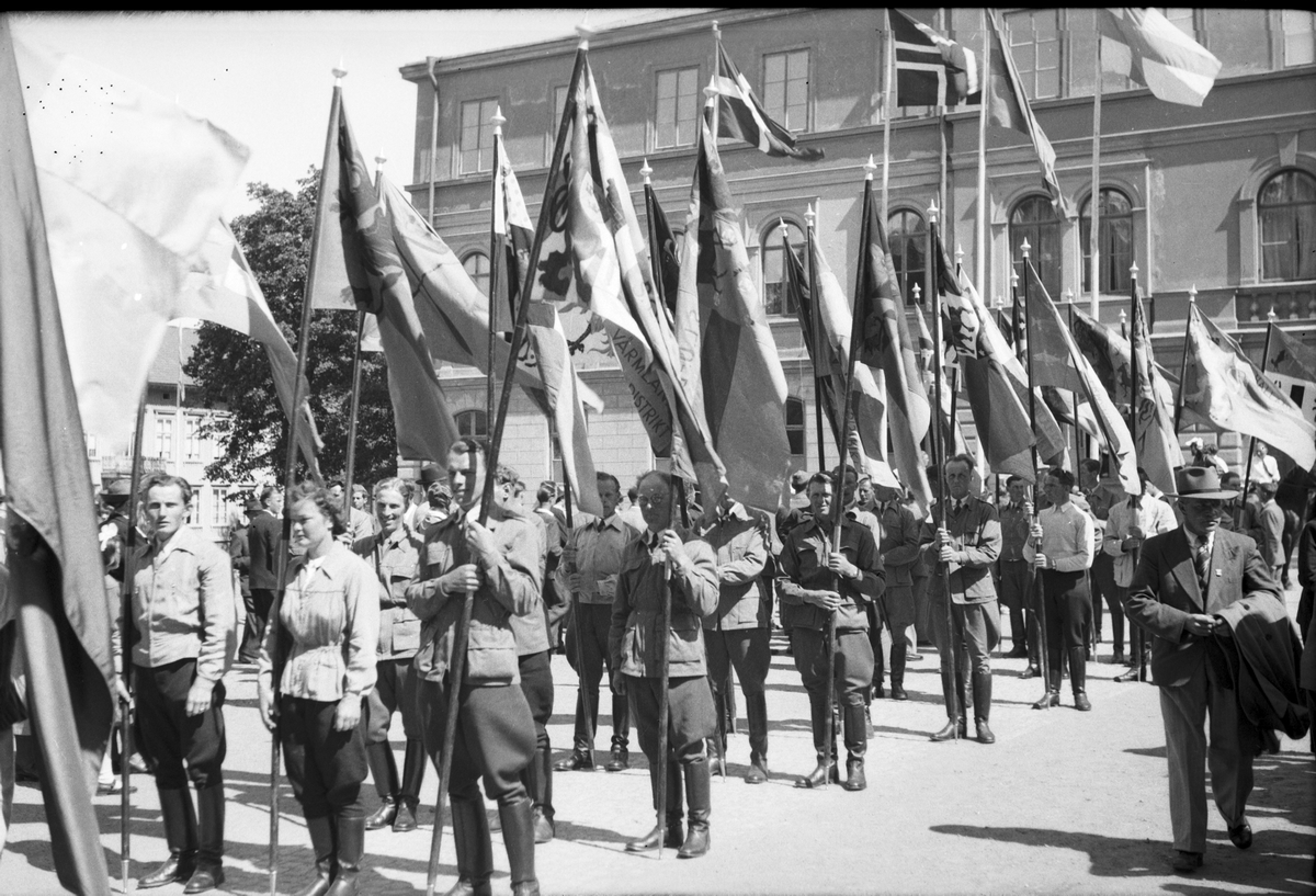 SLU Riksstämma Fanborg utanför läroverket. Vänersborg