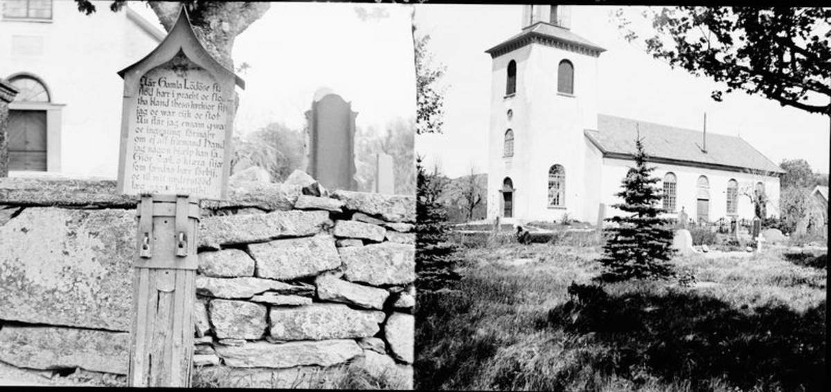 Gamla Lödöse. Till vänster Sankt Peders kyrka. Till höger tiggarstock.