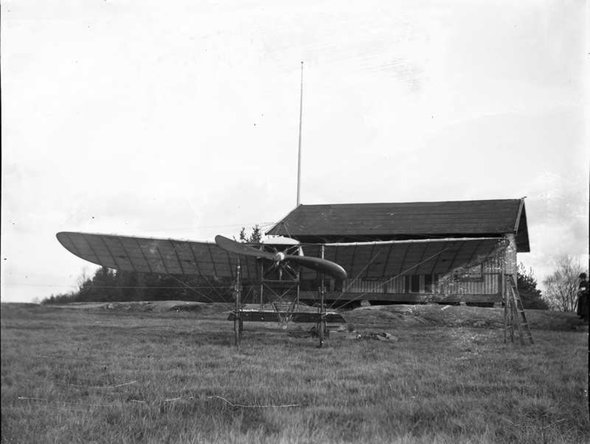 Gammal flygmaskin. Fotot kan vara taget på Holmängen, Vänersborg