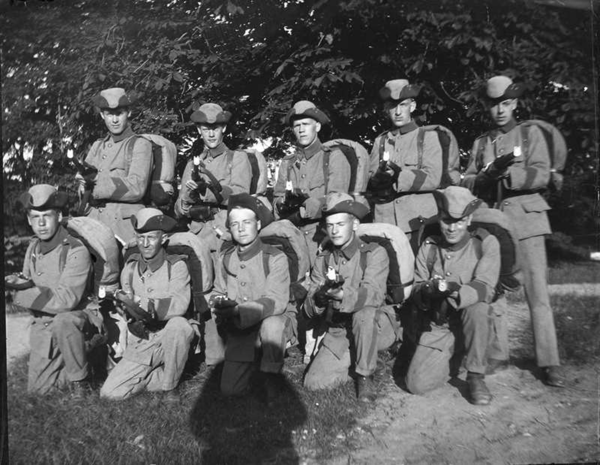 Tio beväringar poserar med bössorna.