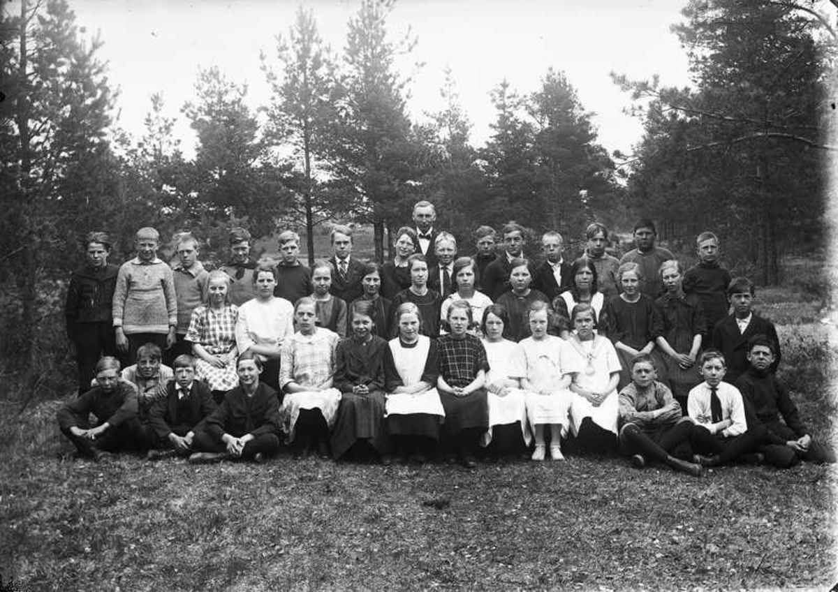 Skolbarn med lärare.
