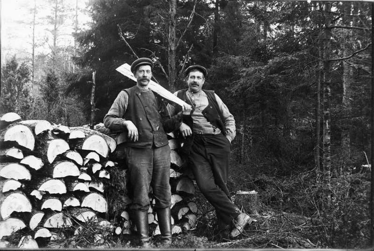 Två män vid vedtrave