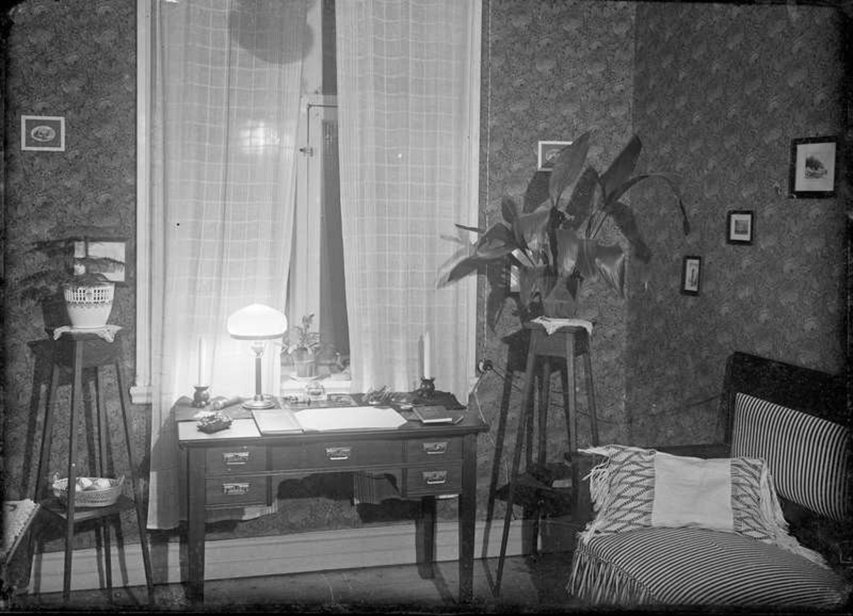 Interiör. På väggen till höger hänger en bild på vattentornet i Vänersborg, ev. bild: O 08 993