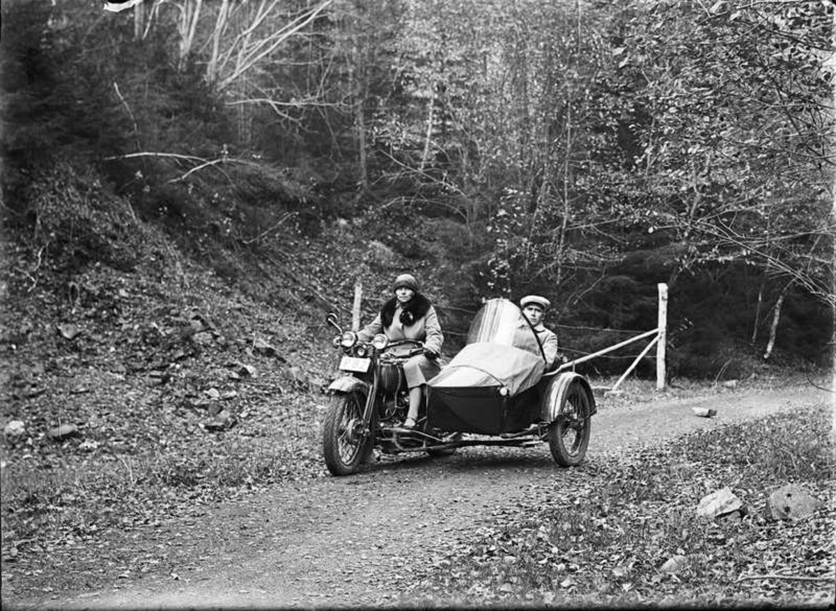 Kvinna och man på motorcykel.