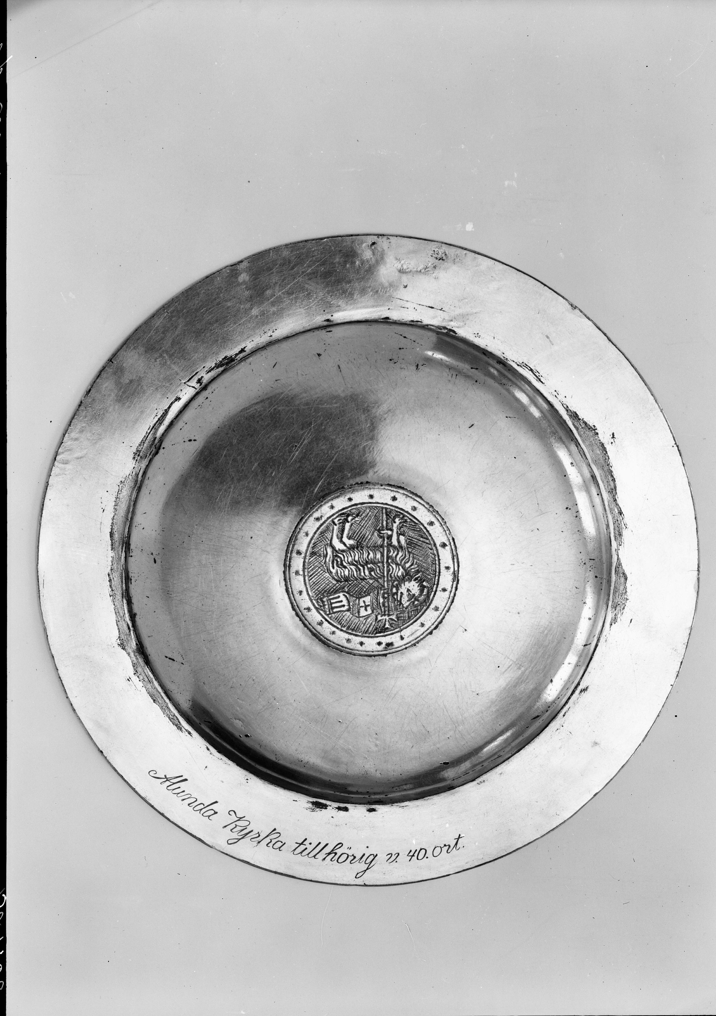 Paten av förgyllt silver med emaljinläggingar, 1300-talet. Baksida.