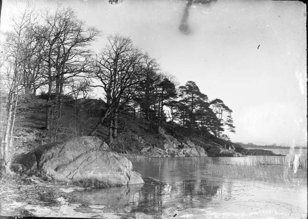 Vy där man skymtar Halleberg (?) i bakgrunden. Möjligen är bilden tagen vid Holmängen/Kyrkängen.