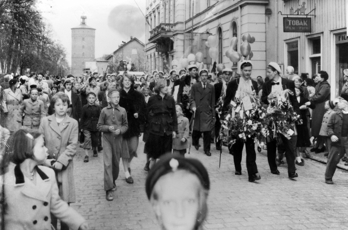 Studentexamen, kortegen på Kungsgatan. Vänersborg