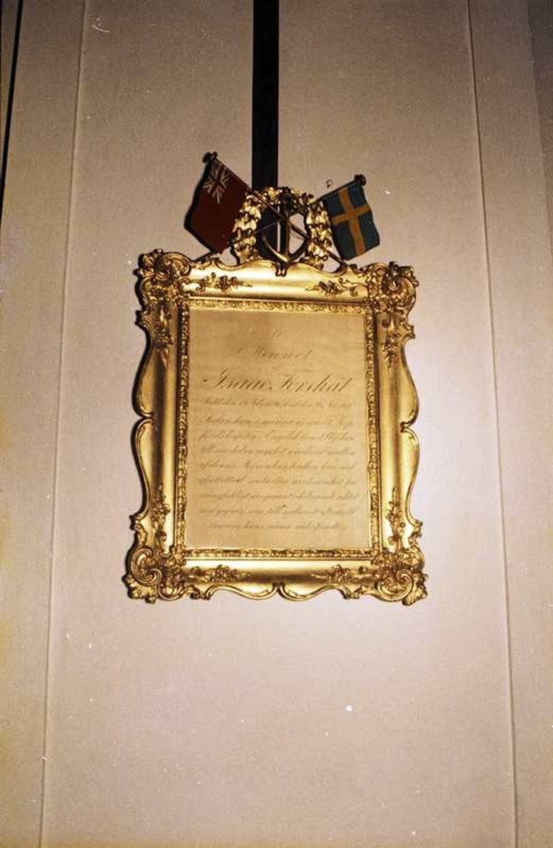 Kimstad. Minnestavla i kyrkan över en viss Isaac Forskål. 6 Okt. 1967.