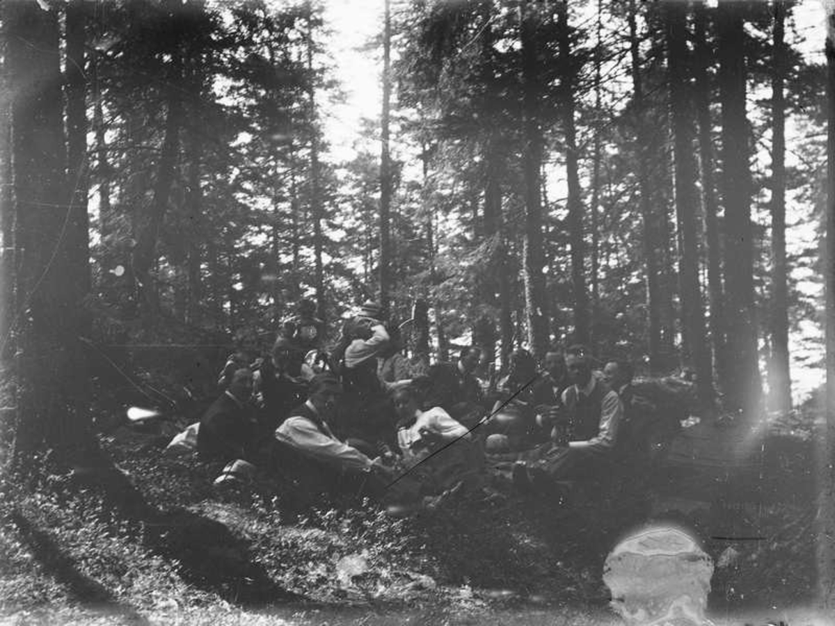 Gruppbild på okända i skogen.
