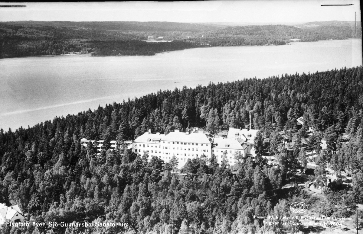 Flygfoto över Sjö-Gunnarsbo Sanatorium. Åsunden