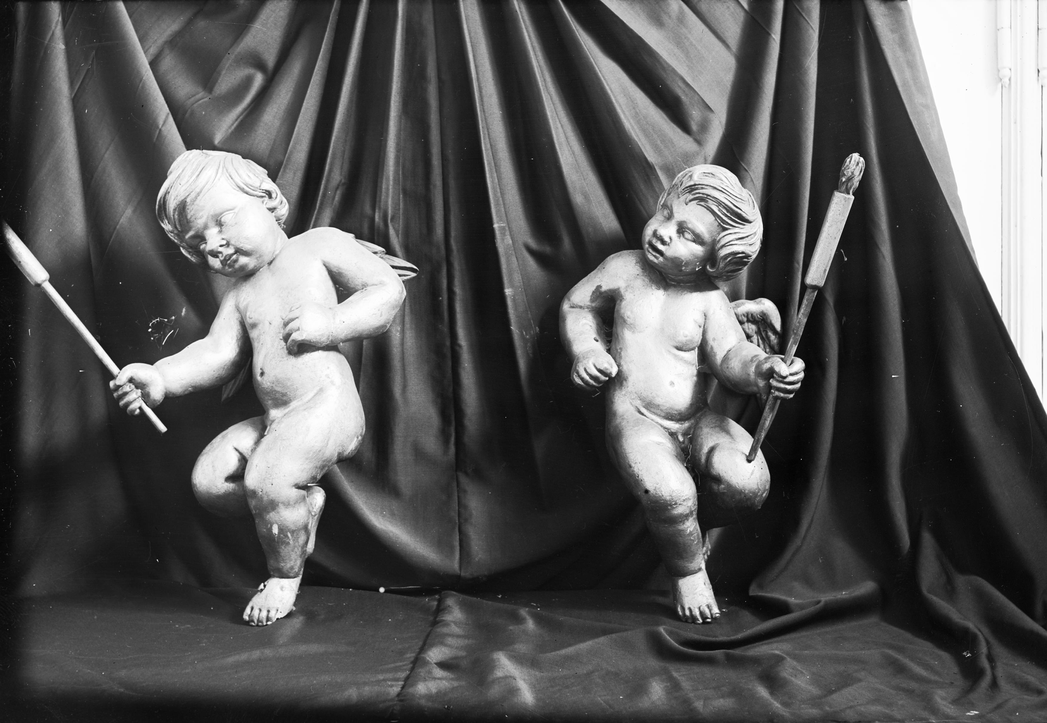 Putti, möjligen utgjort krön till en äldre gallergrind mellan Aschebergska gravkoret och kyrkan. Snabbinv.
