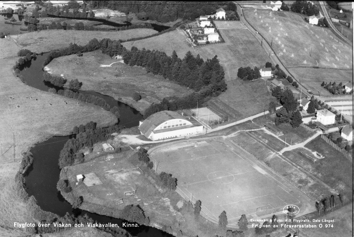 "Flygfoto över Viskan och Viskåvallen Kinna"