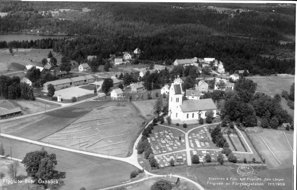 Text på bild:"Flygfoto över Öxabäck"
