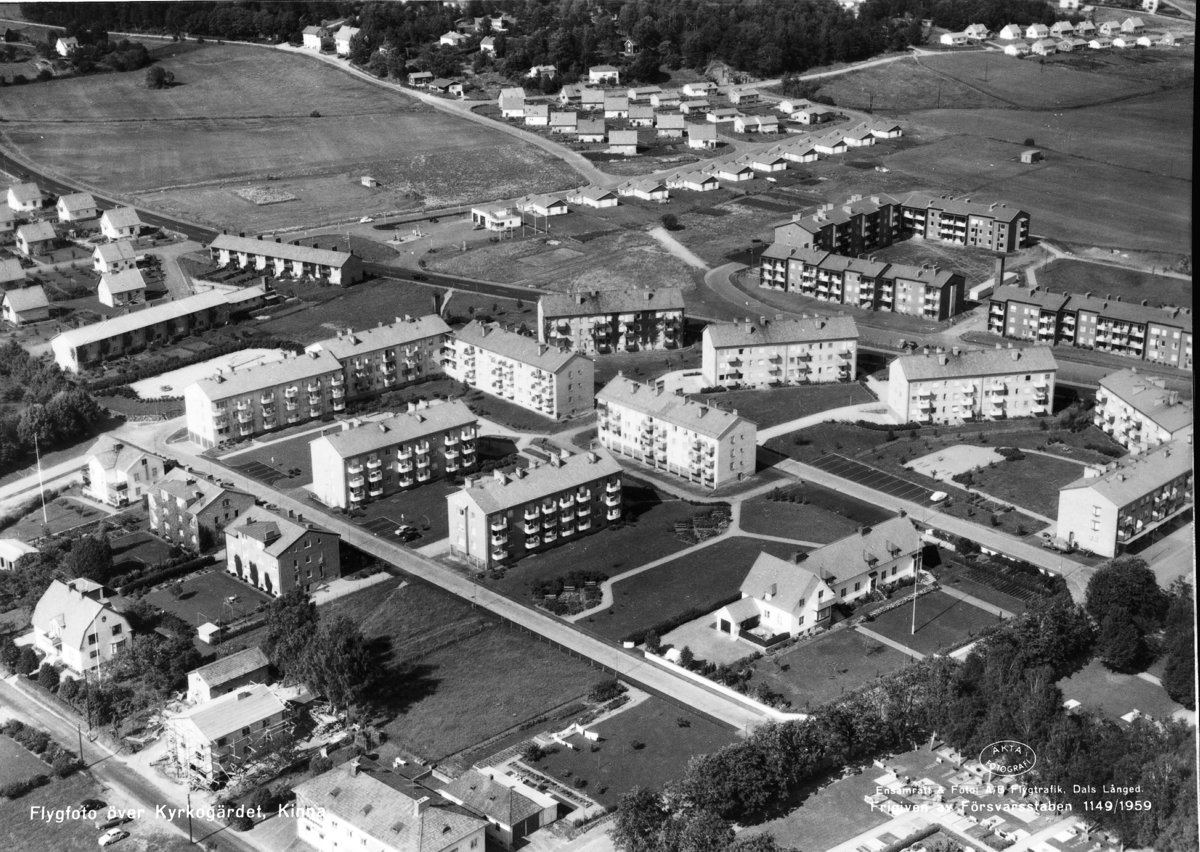 Text på bild:" Flygfoto över Kyrkogärdet Kinna"