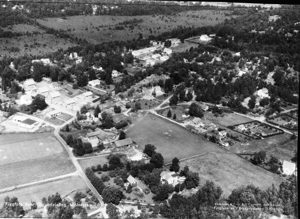 Text på bild:"Flygfoto över Djupedalsäng Mölnlycke"
