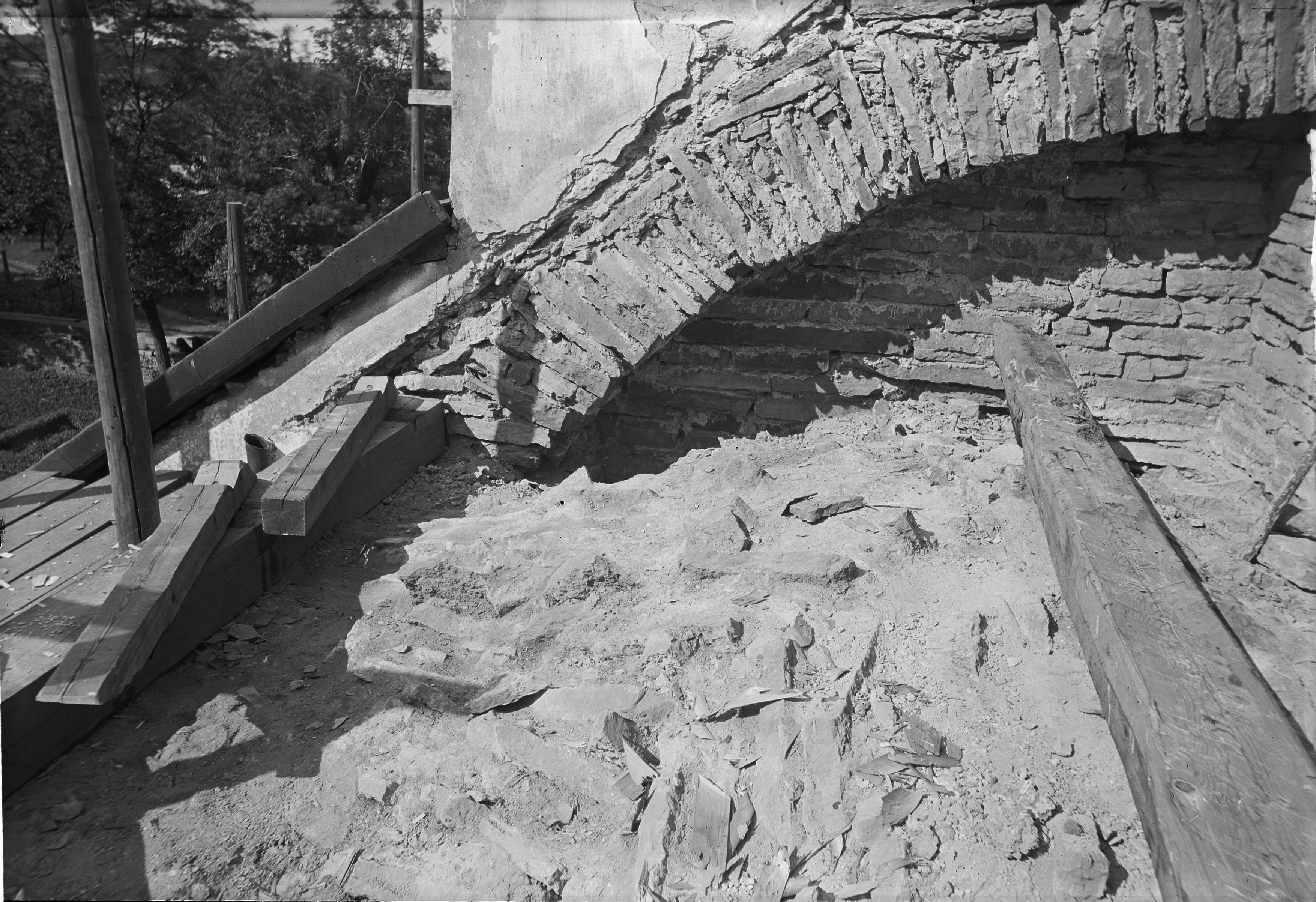 Södra fasaden, andra strävpelaren från väster, östra sidan.