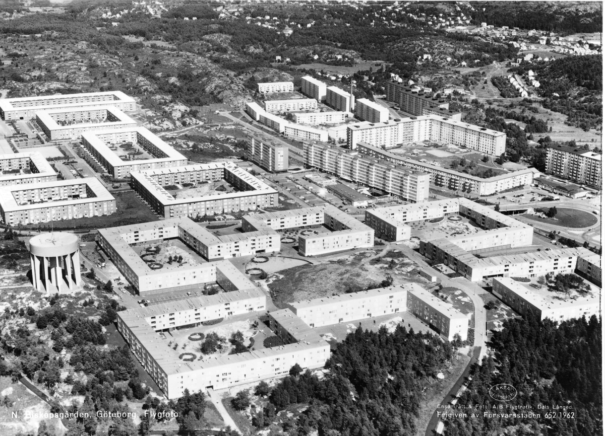 Text på bild:" N. Biskopsgården Göteborg Flygfoto"