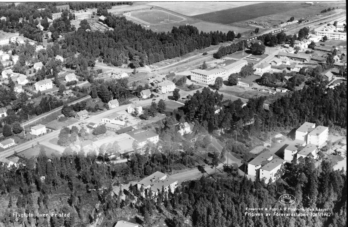 Titel: Text på bild:"Flygfoto över Fristad"