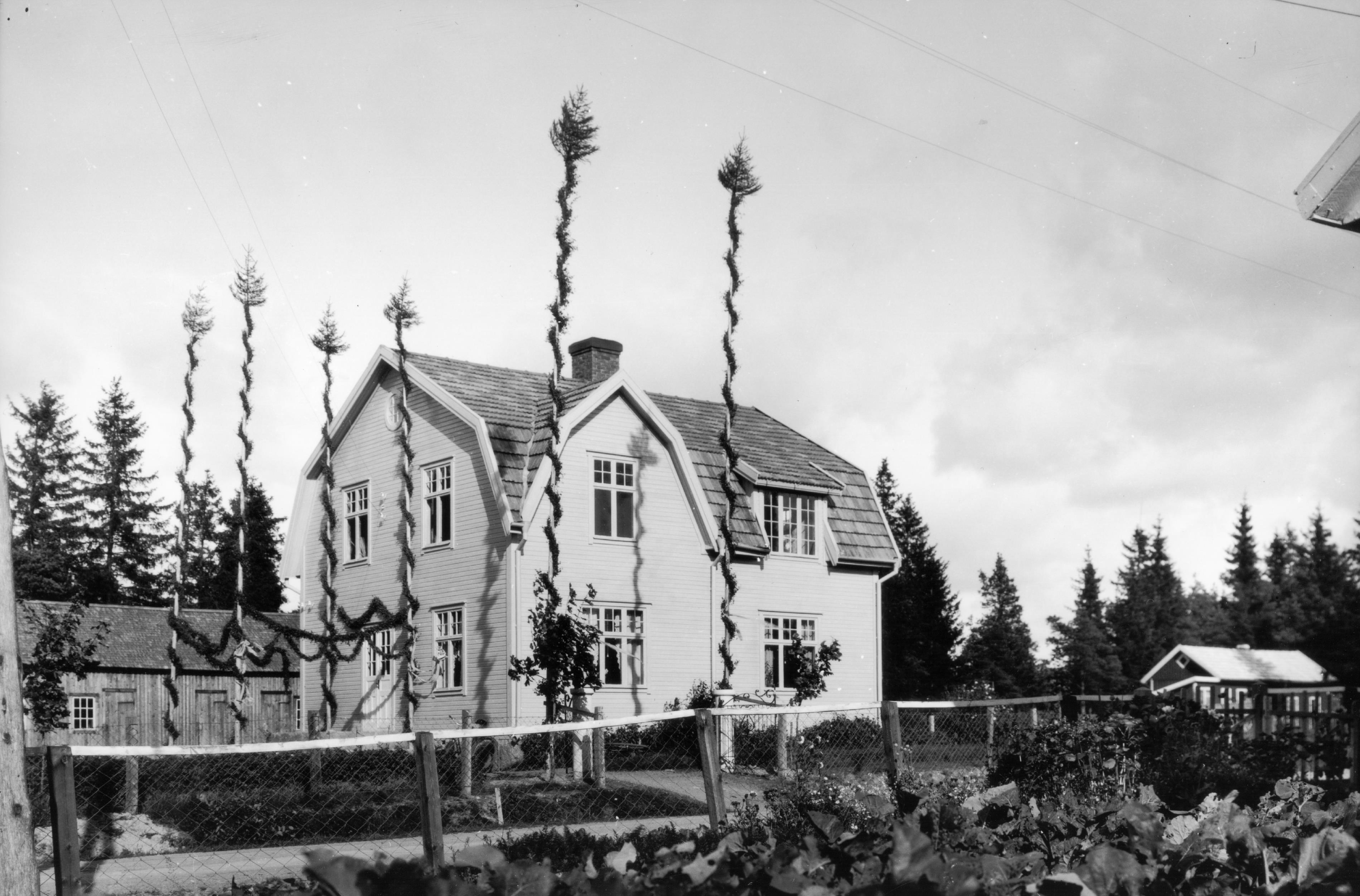 Bröllopsutsmyckning vid hus.