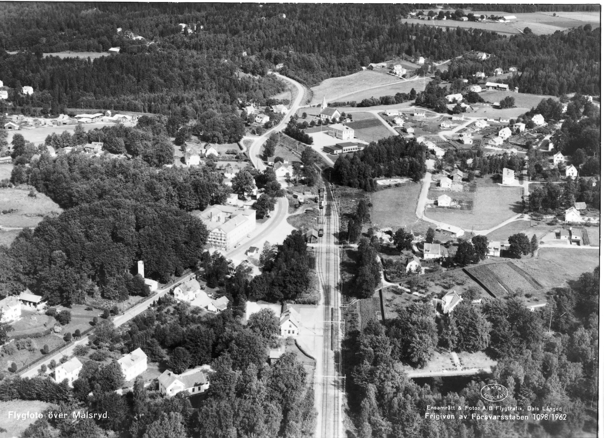 Text på bild:"Flygfoto över Målsryd"