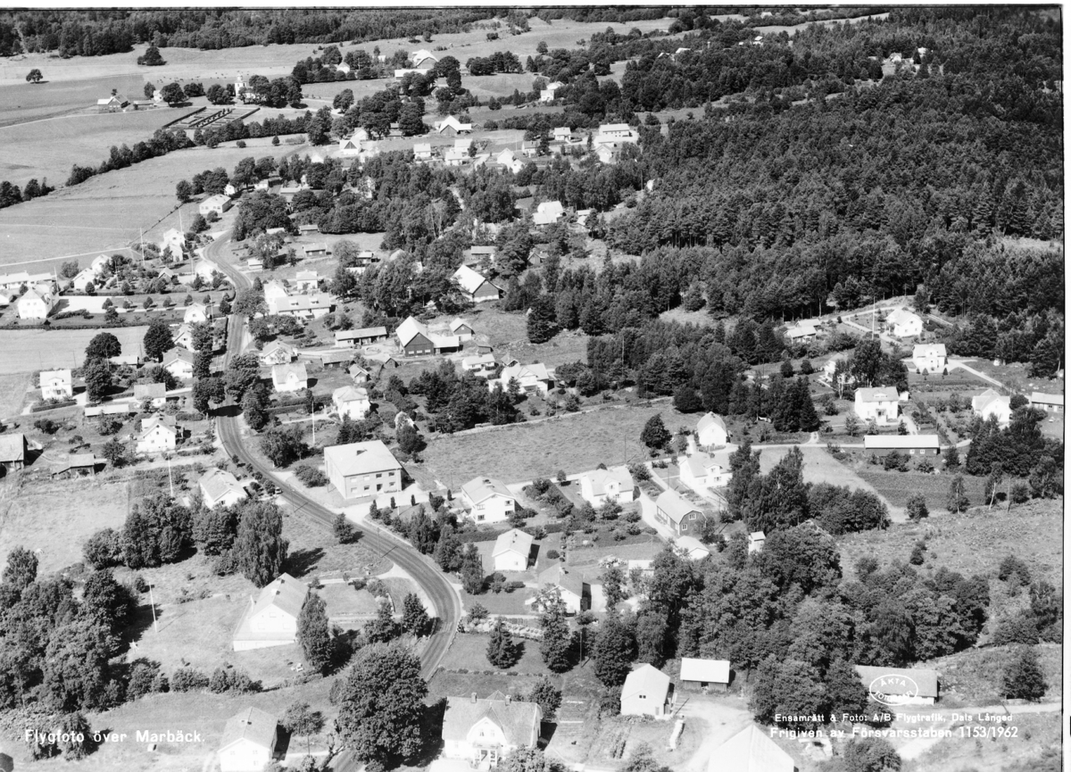 Text på bild:"Flygfoto över Marbäck"