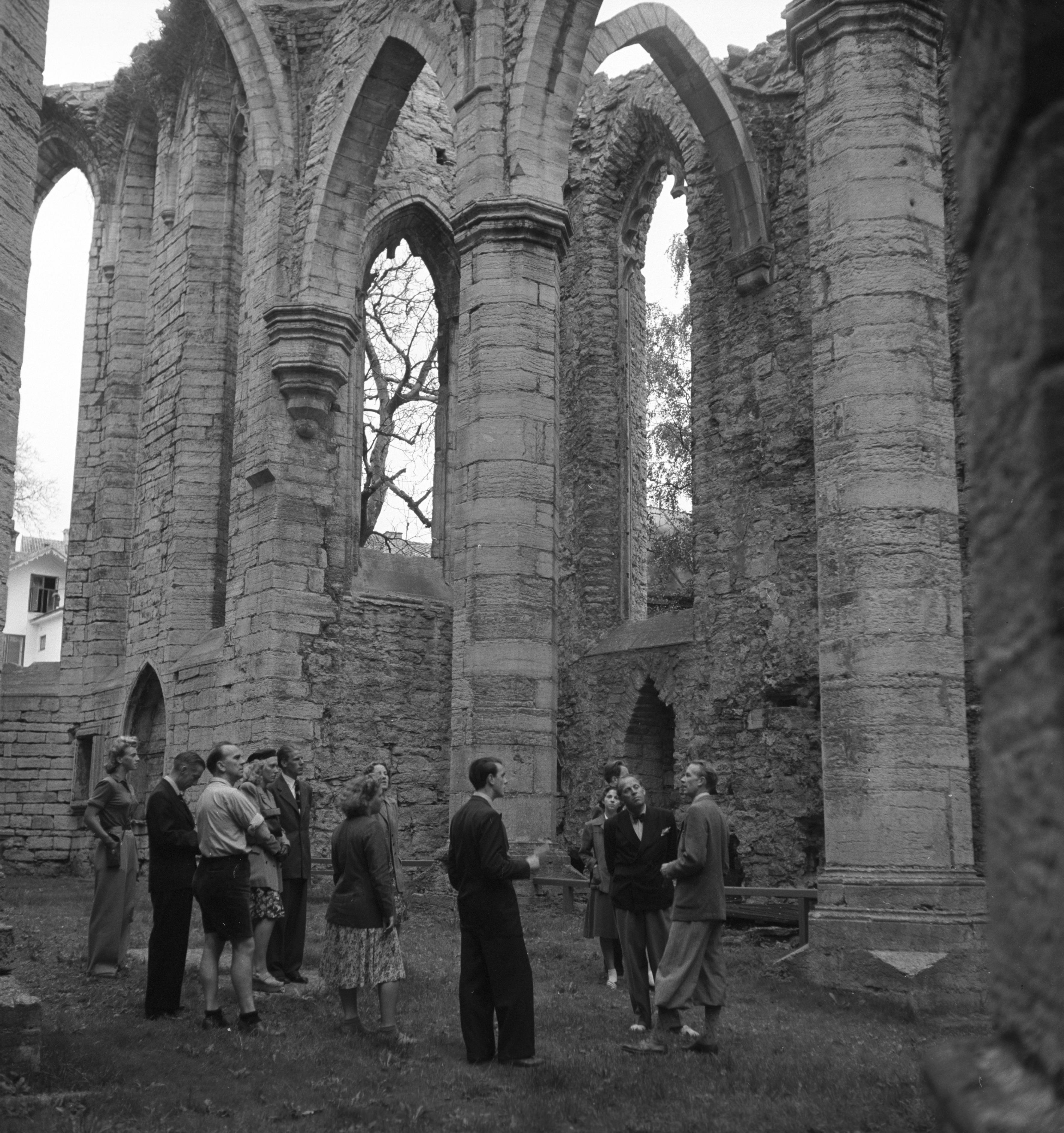 Guidad visning av ruinen. Bilden är troligen från 1940-talets första hälft.
