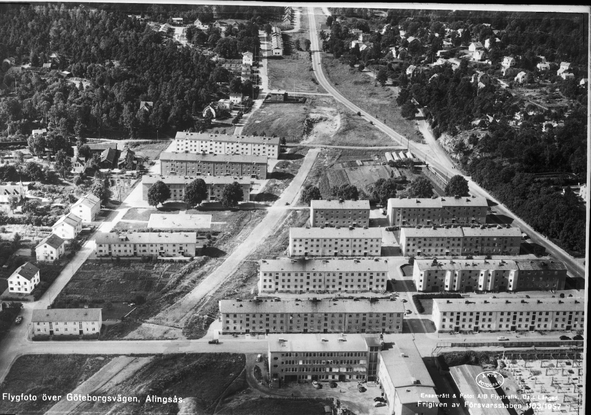 Text på bild: "Flygfoto över Göteborgsvägen Alingsås"