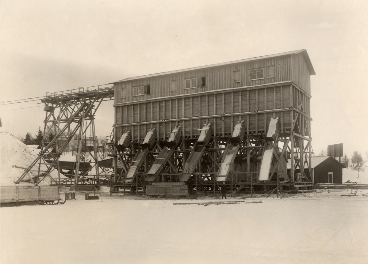 Obbola sulfatfabrik vid Holmsunds AB i Holmsund, Västerbotten. Utlastningsstation för hack.