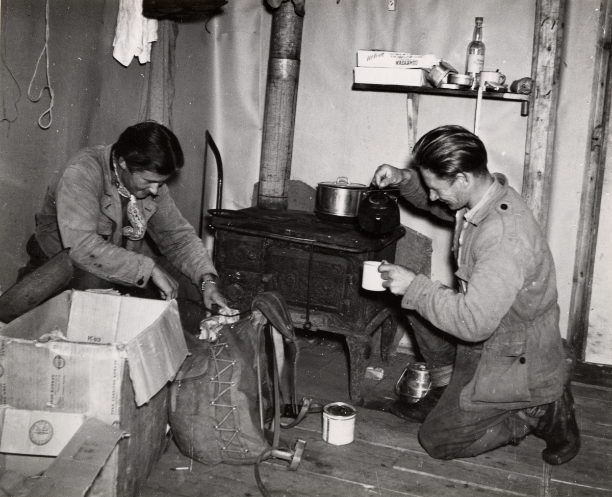 Renskötarna Verner Jansson och Jossa Blind från Arjeplog styrker sig med kaffe i den gamla gruvstugan i Nasafjäll. Nasafjälls gruvor.