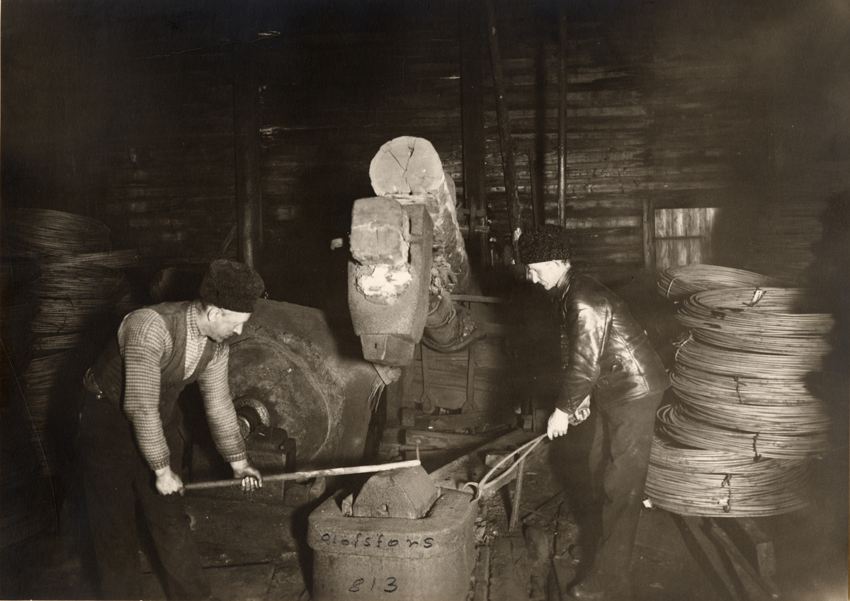 Stångjärnshammare vid Olofsfors Bruk. Till vänster Jäderberg.