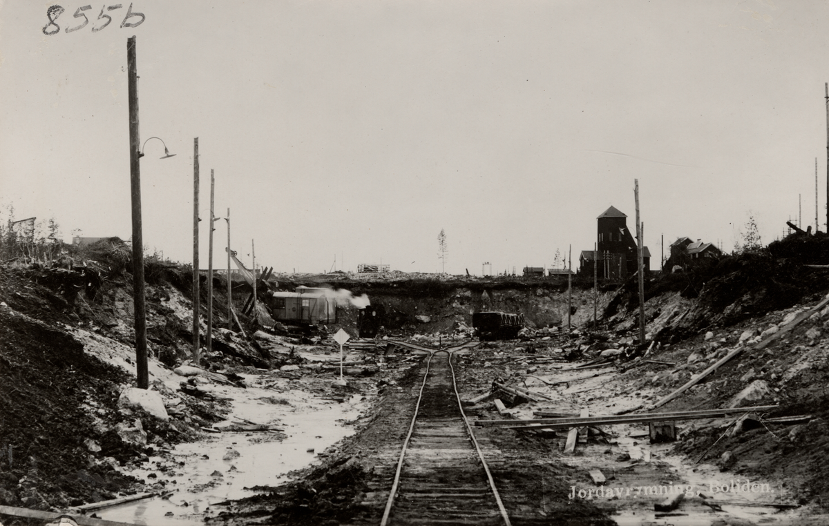 Gruvbyggnaden från öppnandet av Bolidens Gruva. Jordavrymningen i tidigt skede och gamla Laven.