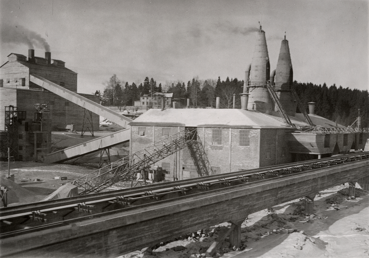 Stockholms Superfosfat Fabriks AB, Stockviksverken söder om Sundsvall. Från vänster karbidfabrik och kalkugn, i fonden mässen.