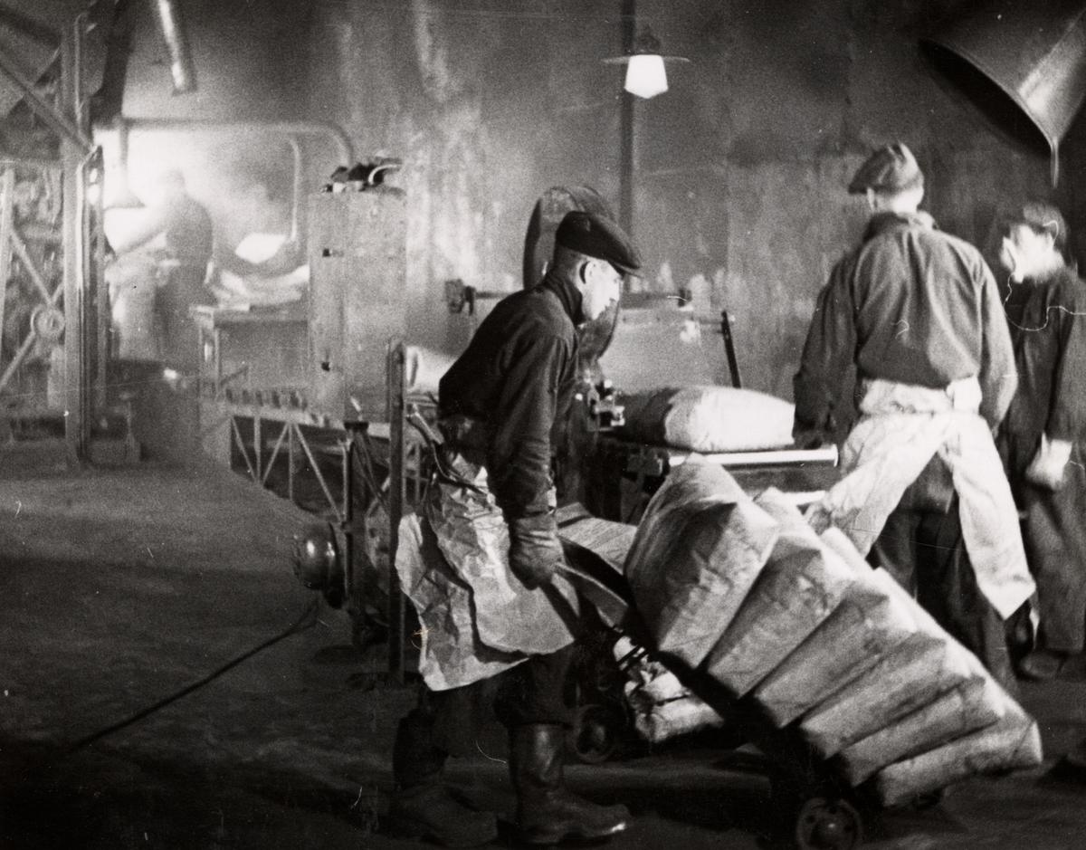 Stockholms Superfosfat Fabriks AB, Stockviksverken söder om Sundsvall. Säckning av kalkkväve.