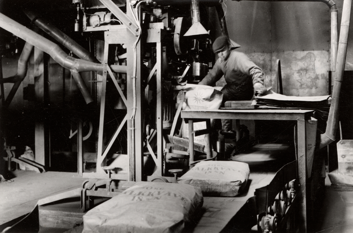 Stockholms Superfosfat Fabriks AB, Stockviksverken söder om Sundsvall. Säckning av kalkkväve.