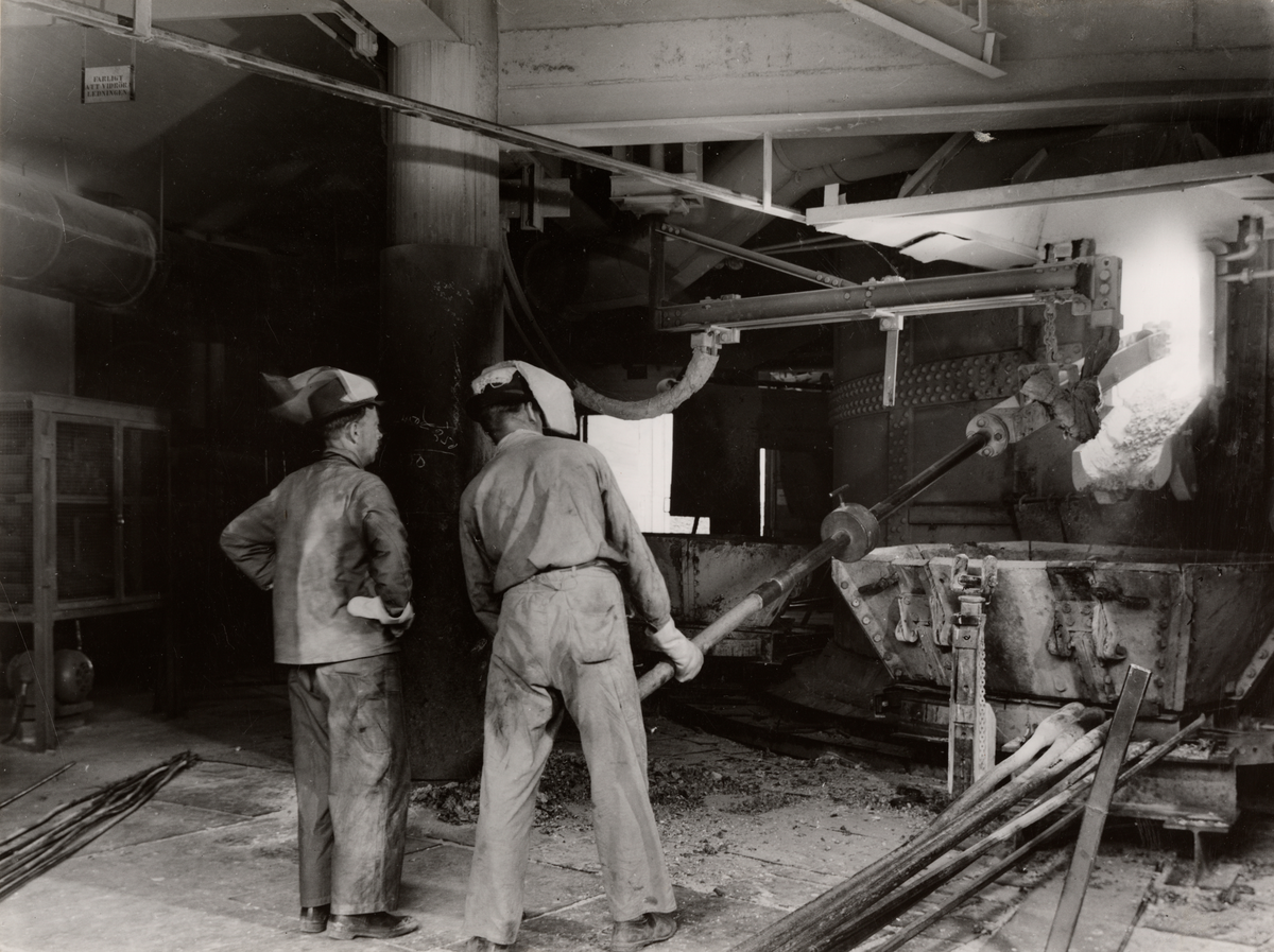 Stockholms Superfosfat Fabriks AB, Stockviksverken söder om Sundsvall. Tappning förberedes med extra ljusbåge.